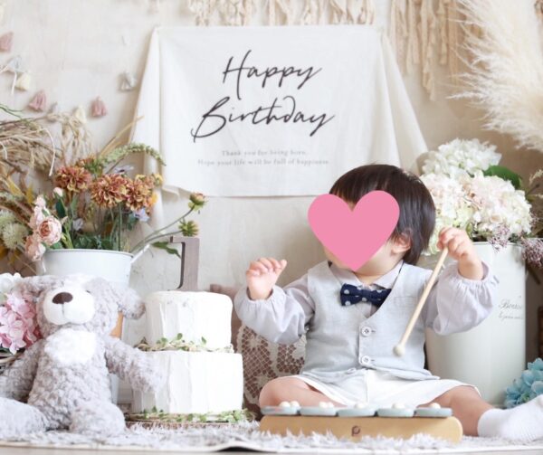 1歳バースデーの記念スタジオ写真です。